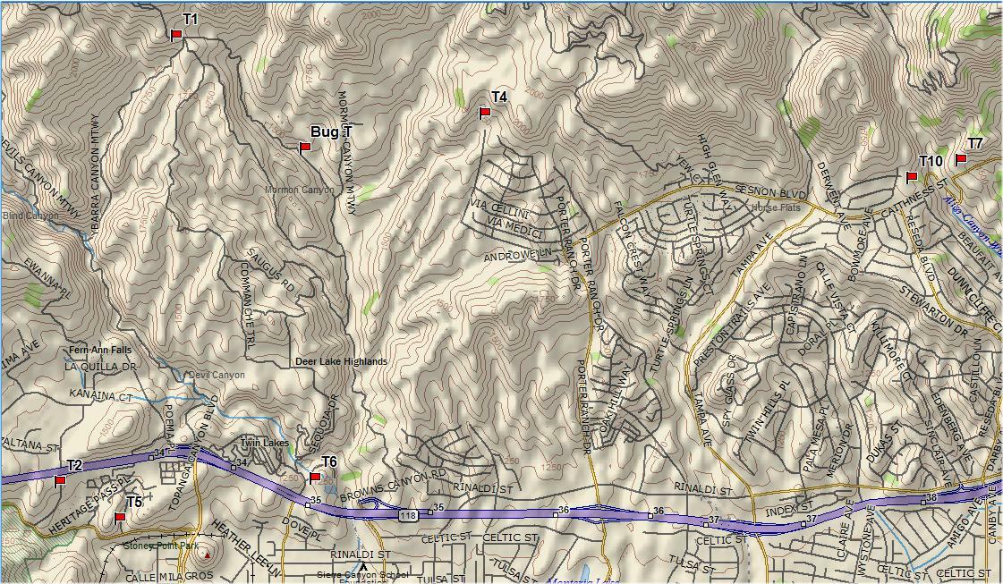 on the east side of Aliso Cyn Wash. T10 (50 mW) was on Sesnon
