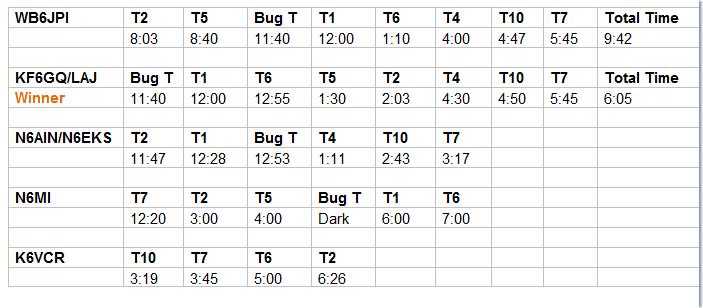 Two teams found all 8 Ts. The KF6GQ/KD6LAJ team did it in less