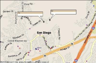 T2 and T3 were located near Black mountain about 8.7 miles east of Del Mar.