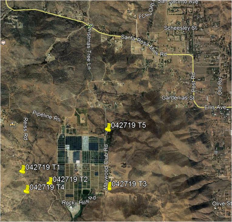 Where were the 5 transmitters: South of Santa Rosa Mine Rd