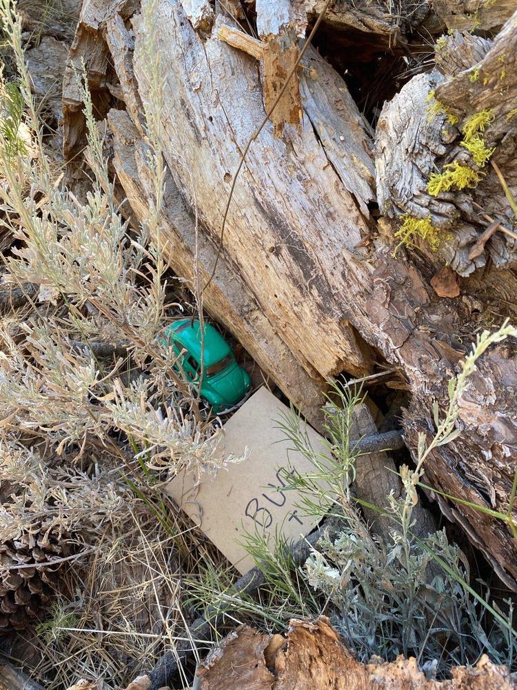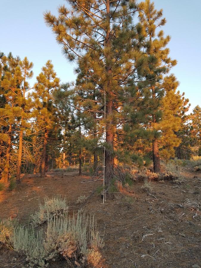 stacked J pole propped up to a tree. T9 was hidden a short