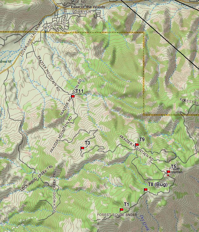 The remaining Ts were set up on the forestry road 8N04