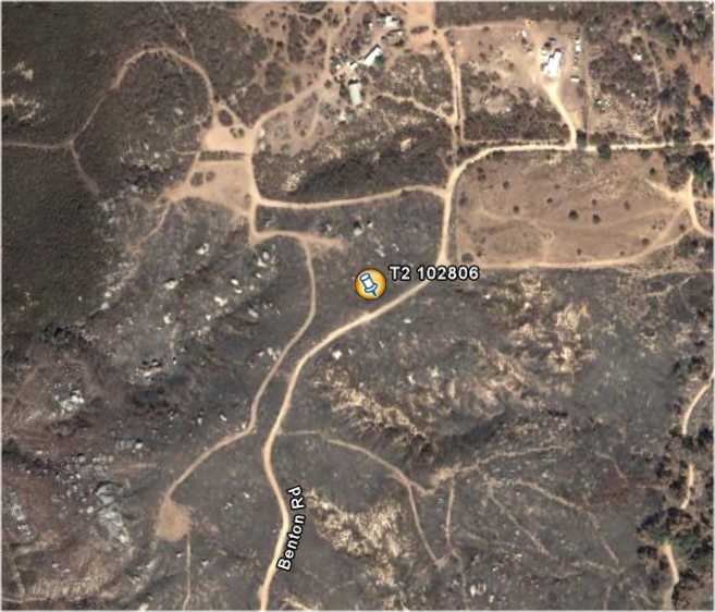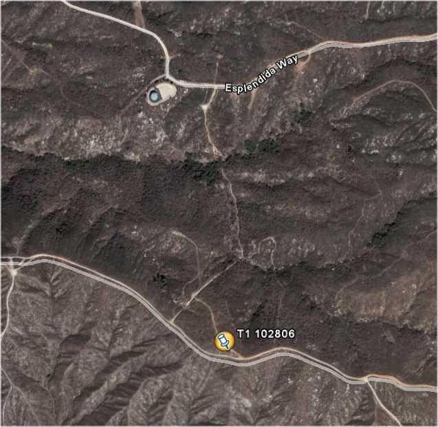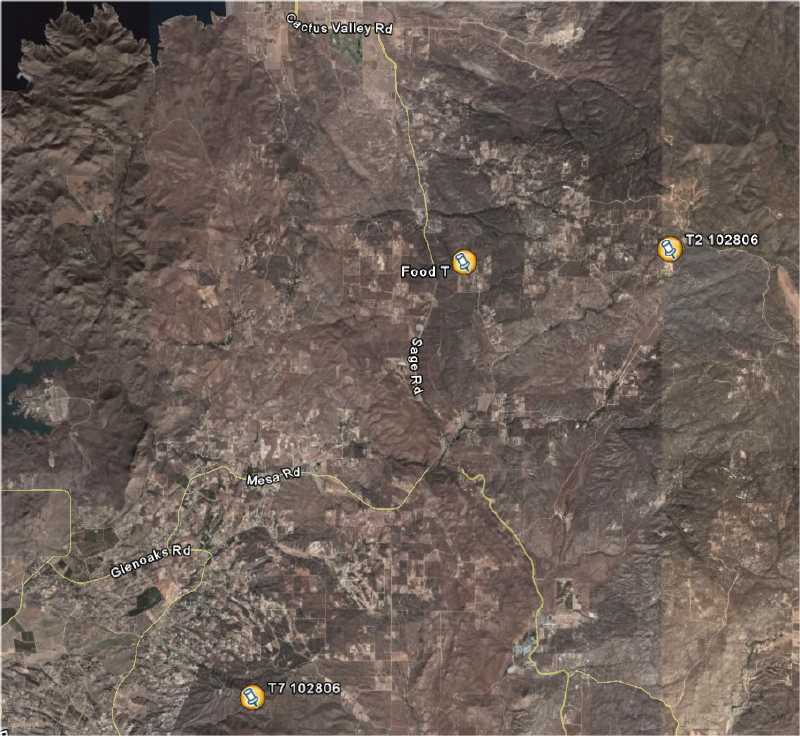 T1 was at N33 31.436, W116 58.905 and T2 was at N33 37.322,