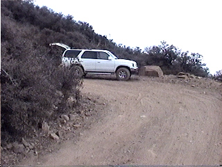 On Saturday we left at 6:45 to hide the remaining Ts. First was T4 running 4 watts using a vertical "tape measure" 3-element beam. This T was located on Pine Canyon Rd, (south of Hwy 138, east of I-5) 4 miles east of Three Points. The antenna was pointed toward Tecuya Ridge (location of T6).