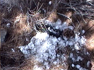 It was now 10 AM we instead of being on Mt Pinos we were getting gas at the Frazier Park exit. I was much relieved when I called JPI and found that T1 had started as planned and that it could be heard at the starting point. The next T was T2 which we hid on the south side of Pinos which is where the road is in Ventura county. There was still a dusting of snow from the night before so we collected some and piled it around the T. T2 was running 350 mW into a horizontal 3-element tape measure beam pointed at Cuyama Peak. The idea was to draw the hunters that found T1 over to Pinos where they would also hear T4. On the way to T4 they would hear T5. At T2 we could hear T1. On the way down we could hear T4 and T5.
