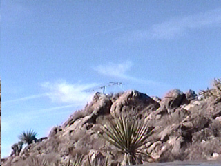 Before leaving, I had used a 3-D topo map program to select several high points to hide the main T. It was dark before we arrived in the Cima area. Upon driving to each possibility, we found that the road was gated or posted near the top. I would have used the topo map program again had we remembered to bring the data disk. Back to old fashion auto club maps. We searched some more and then decided to call it a night and start again in the morning. We arrived at Primm about midnight.