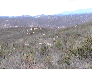 Now for T-7 (crickets with KG6KZF voice ID). I needed a site to tie T-4 and T-5 together. We roamed around looking for a high point. The areas I had picked out on the maps ended up not having any public roads. Panic time again. Just then I spotted another hill. Could you get to it? After circling it (as did the hunters) I found a road that when to the top. It had reasonable altitude and a great view of the Elsinore Peak ridge although Temecula and Murrieta were shadowed and Elsinore was behind a hill. T-7 (500 mW) was set up with a 3 element beam at 45 degrees pointed at Murrieta. There was a large flat area just below the peak of the hill. We hid T-6 (50 mW) just over the side at the end of the flat area. This was about 500 feet west of T-7.