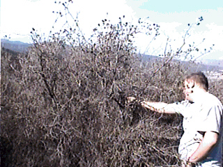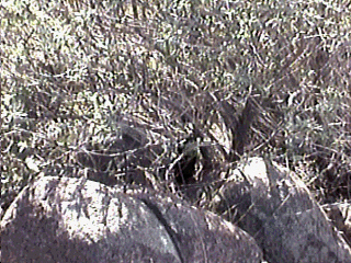 On to Elsinore Peak. We found some rocks at the junction where a dirt road took off. I never went down the road (as did some hunters did). We hurriedly hid T4 in a bush out of site of the road but had to fix the old coat hanger beam first. It was vertical and aimed toward High Peak/Palomar. This should lead anyone falling for my T-1 trick back into the area. T-1 could be heard here.