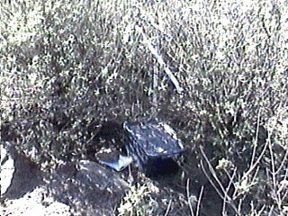 Just one more T to hide. We headed back toward Murrieta. My friend said he knew of a hill that might work. We arrived at the hill and found that the road to the top was private and desided not to hide there. A little father south east we found a rise on the road that had a still good view and hid T-2 (450 mW - whip) there next to a fence. Finally, all the Ts were hid so we headed for my friend's house.