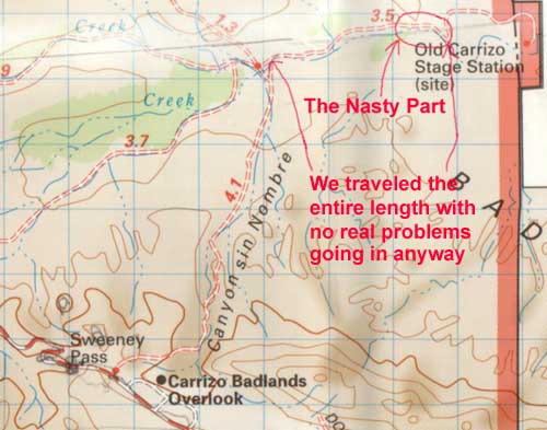 trucks stuck approximately 50 feet from an offshoot of the stream.