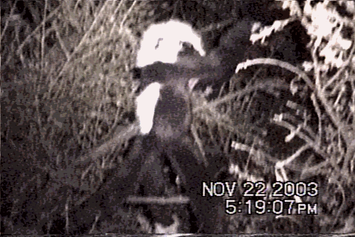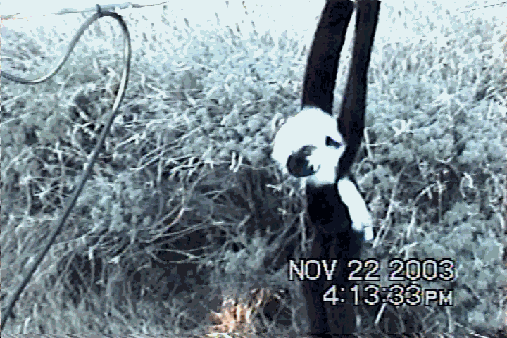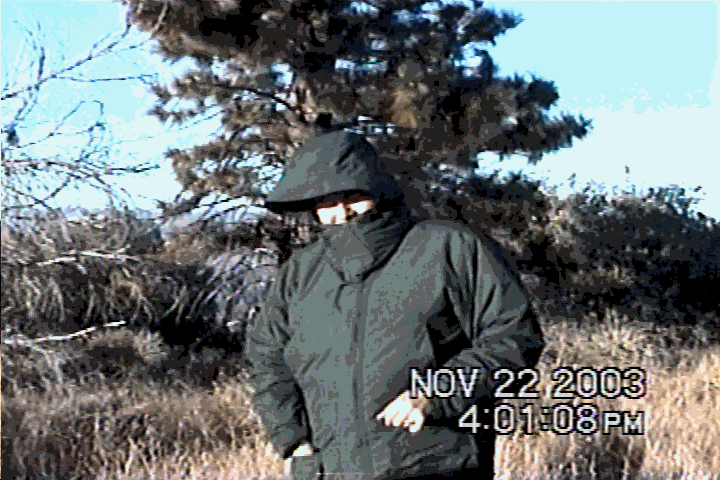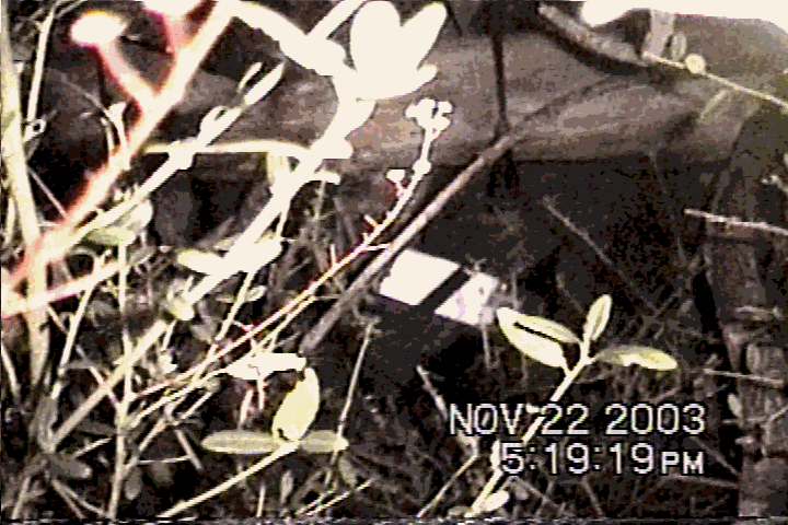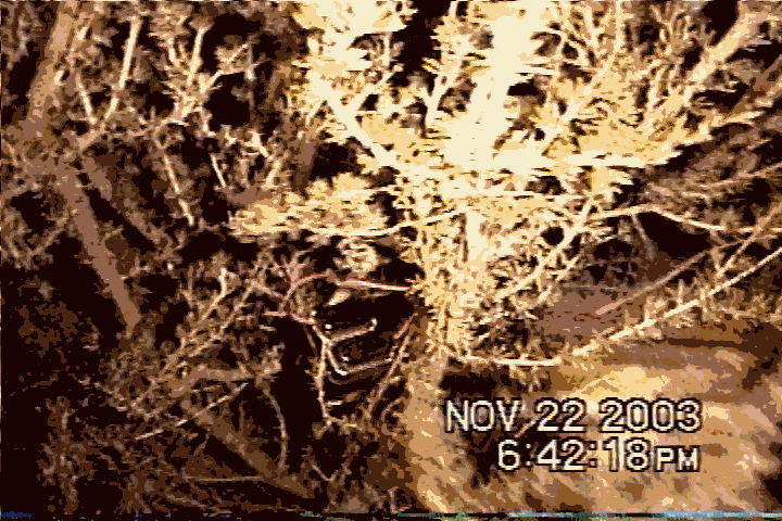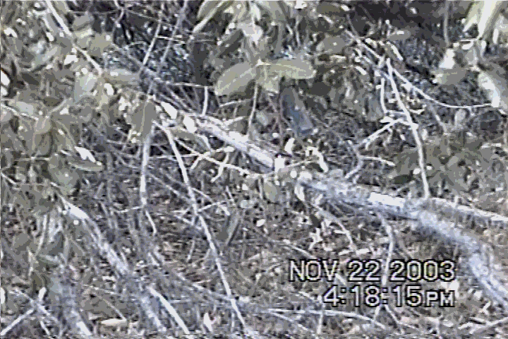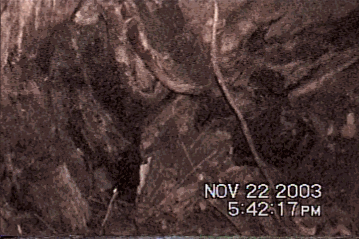 Off to Figueroa. I came across EKS and AIN and heard the Under-the-Rock T. I found another road off to the right. The signal pointed in that direction so I went up to the end of the road. EKS/AIN were right behind me. I quickly put on the cold weather gear and grabbed the sniffer. I found the T while they were about a bush away and signed in. Just then they saw the monkey hanging in tree. I handed them the sign-in sheet and proceed to find the actual T.
