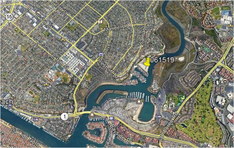Location of the Transmitter: The Newport Aquatic Center at the end of Whitecliffs Dr in Newport Beach.