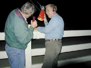 KF6GQ's signal was very weak and horizontal at the starting point, and the reason was clear at the end. His 20 milliwatt "SquawkBox" transmitter, PolaPulse battery and wire antenna were taped to a plastic fence at the end of La Sierra Drive in Chino Hills. The location was relatively high and clear, and it looked back down Carbon Canyon to the starting point 11 miles away, but the path wasn't line-of-sight.