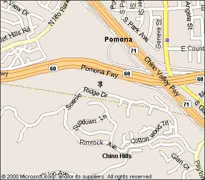 The half-watt rig was along Scenic Ridge Drive in Chino Hills, but the beam was about a hundred feet down the hill, pointed into the new Wal-Mart across the freeway in Phillips Ranch, and beyond to Mt. Baldy. At least one team drove right by the transmitter but didn't stop because the signal wasn't strong enough there. They then spent some time with the others who were sniffing in the Wal-Mart parking lot. We also heard stories of trips out Carbon Canyon Road or out the 91 freeway to the 71.