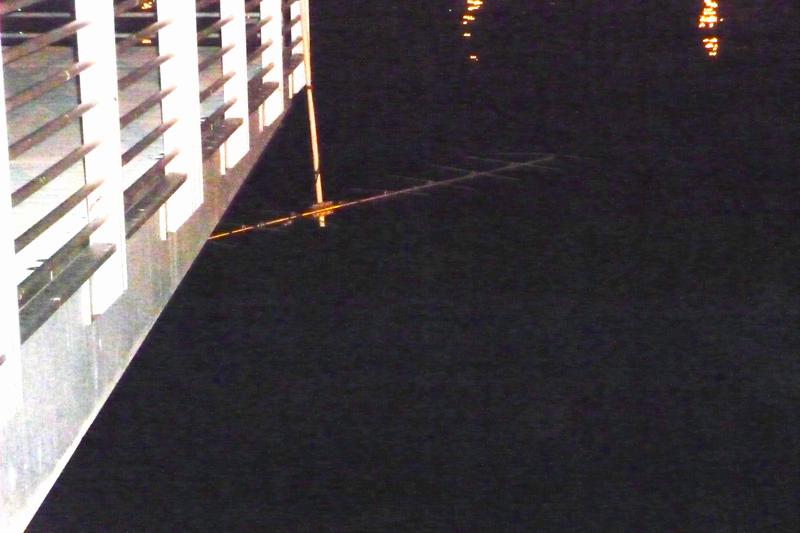 Antenna mounted near water level on small pier off