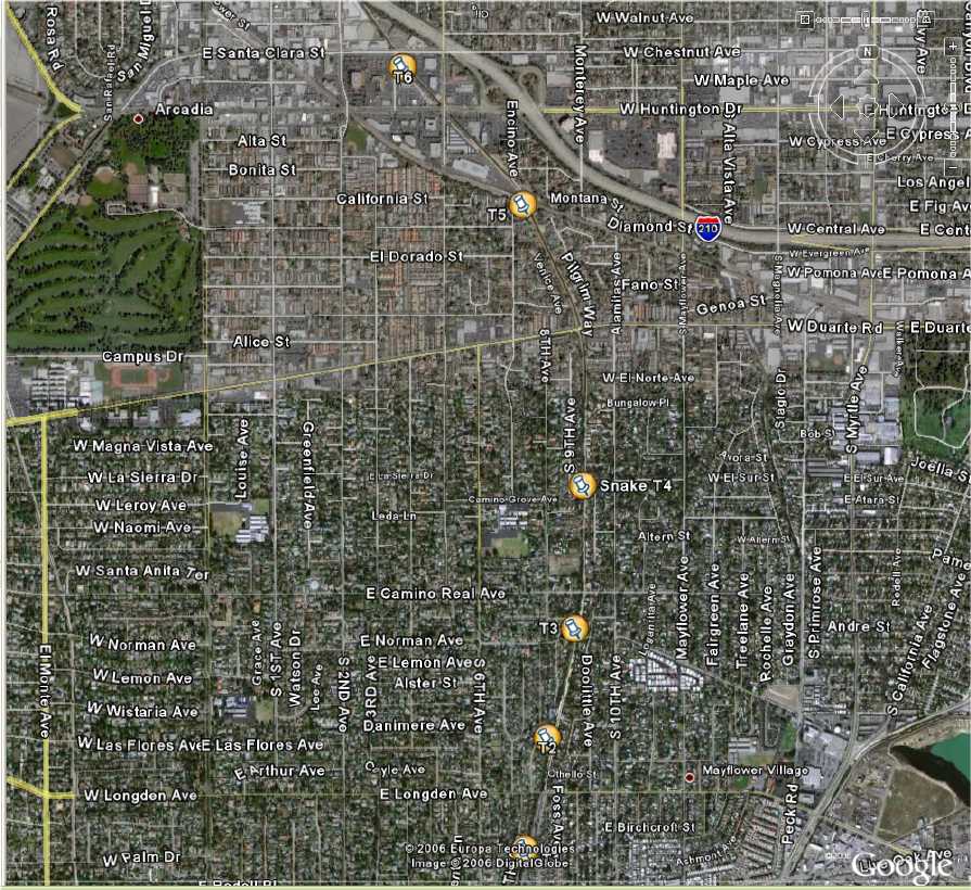 The Ts where set up along the Santa Anita Wash in Arcadia.