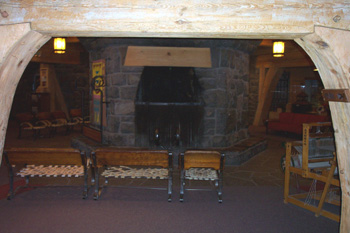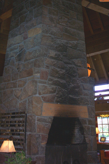 | I could not stand back far enough to take a picture of this massive structure. | This fireplace is huge, must be 8 foot tall and 5 foot wide. A fireplace on both sides to keep it very warm in the winter. This stone structure is 80 foot tall and 15 foot wide at the base. |